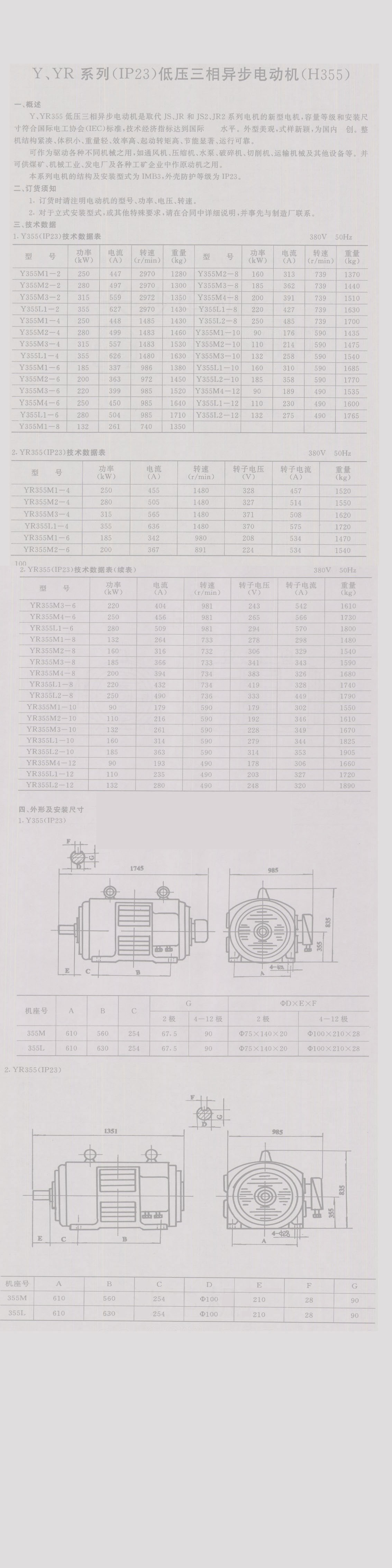 Y、YR系列(IP23)低壓三相異步電動機(jī)(H355)